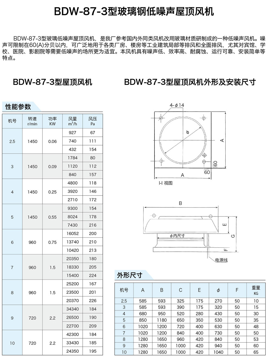 BDW-87-3型玻璃低噪聲屋頂風(fēng)機(jī),是我廠參考國(guó)內(nèi)外同類(lèi)風(fēng)機(jī)改用玻璃材質(zhì)研制成的一種低噪聲風(fēng)機(jī)。